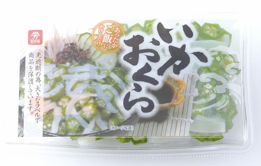オクラ(タイ、インドネシア)、いか、発酵調味料、醤油、魚介類エキス、食塩、砂糖/酒精、ソルビット、調味料(アミノ酸等)、増粘剤(加工澱粉、増粘多糖類)、(一部に小麦・いか・大豆・さばを含む) 添付タレ:しょうゆ(国内製造)、果糖ぶどう糖液糖、醸造酢、砂糖、食塩、かつお節エキス、大根おろし、ポン酢/調味料(アミノ酸等)、増粘剤(キサンタンガム)、(一部に小麦・大豆を含む) |